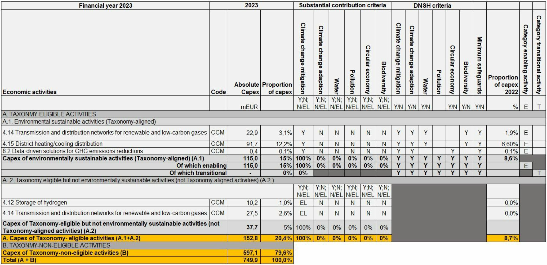 ESG | Theme | Strategic pillar | ESG strategy | Gasunie Green Deal | KPIs | Realisation 2023 | Realisation 2022 | Target 2023 |